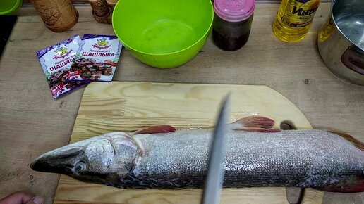 Как приготовить сочный, подкопчённый шашлык из щуки.