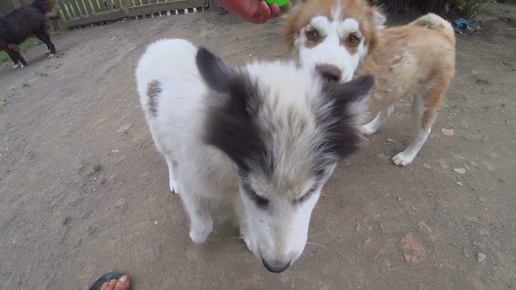 Учу собак хаски, приносить мячик. Деревенский двор.