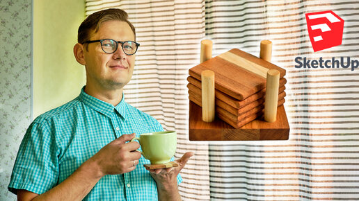 Сделал подставки под горячие кружки из дерева + SketchUp проект