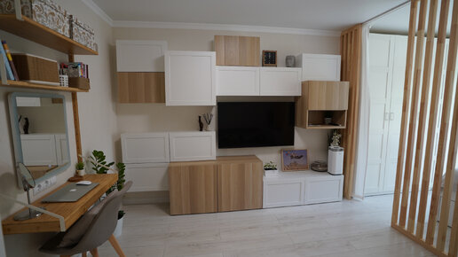 Гостиная, кабинет и спальня в одной комнате. Хозяйка расскажет, как сделать практично и красиво за недорого