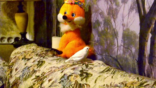 Амадины общипывают для гнезда мягкую игрушку и плетёную салфетку