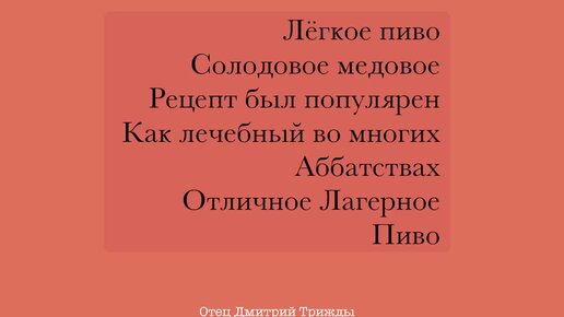 Аббатское лёгкое 1,5 % РЕЦЕПТ ЛАГЕРНОГО ПИВА с МЁДОМ +18