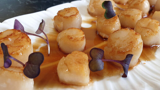 Морские гребешки на сковороде с медово-цитрусовым соусом. Вкусный рецепт морских гребешков.