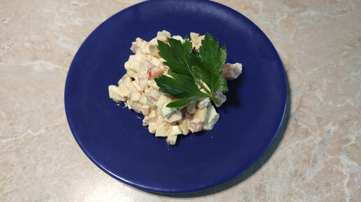 Домашний салат: помидоры, яйца, курица и грибы