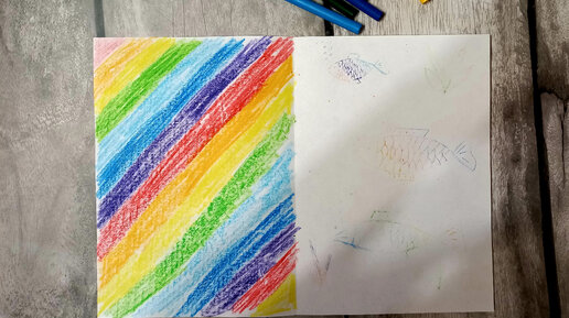 Интересная техника рисования восковыми мелками 🖍