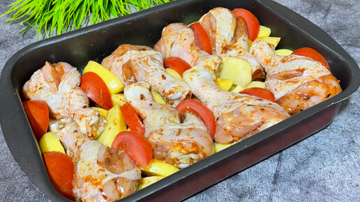 Вкуснейший ленивый ужин. Куриные ножки с картошкой в духовке.