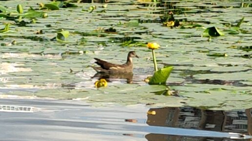 Камышница в Оке. Обычно осторожная и пугливая, все время прячется. Но не эта.