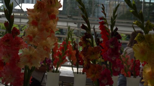Разные сорта гладиолусов на выставке в Московском Ботаническом саду