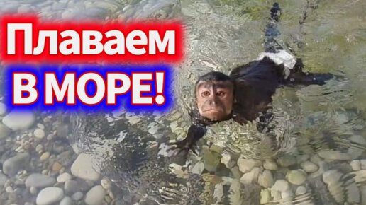 Маленькая обезьянка Алекса плавает в море.