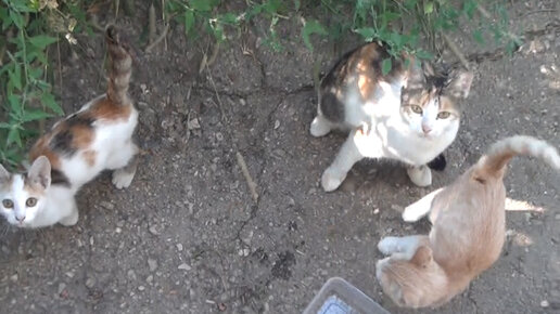 Кошки за окном. 5-я серия. Снова появился трёхцветный. Одного опять не хватает.