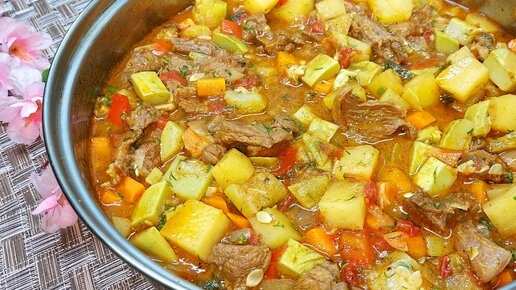 Вкусный ужин. Овощное рагу с кабачком и мясом. Очень простой рецепт.