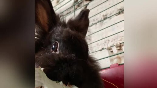 Осторожно, можно залипнуть! Кролик ест капустный лист