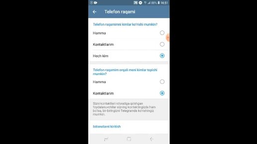 ТЕЛЕГРАМДА ТЕЛ РАҚАМНИ ЯШИРИШ.