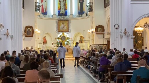 Воскресная служба в католическом храме Святого Симеона и Святой Елены в Минске. Красивое песнопение и органная музыка