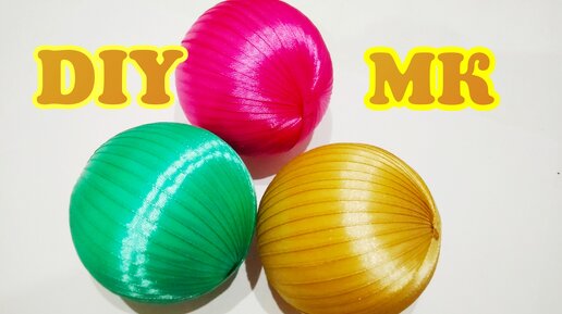 DIY.КАК ОБМОТАТЬ ШАР УЗКОЙ ЛЕНТОЙ ДЛЯ ДЕКОРА.HOW TO WIND A BALL OF NARROW RIBBON FOR DECORATION