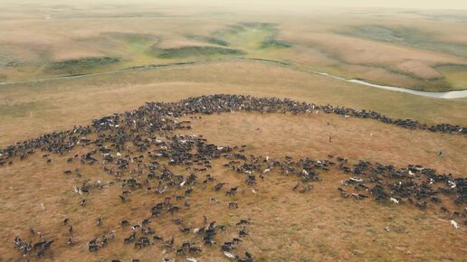 Кадры летней тундры: олени, коренные жители, природа.