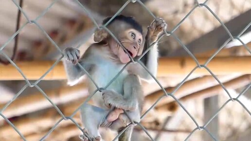Спасение маленькой обезьянки, малыш залез в служебное помещение рабочих парка,а обратно не помнит