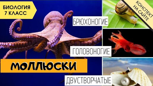 Тип Моллюски, их строение. Биология 7 класс. Двустворчатые, головоногие, брюхоногие. ЕГЭ Видеоуроки
