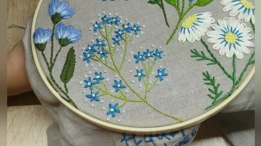 Вышиваю. Финальная часть работы: петля вприкреп и французские узелки