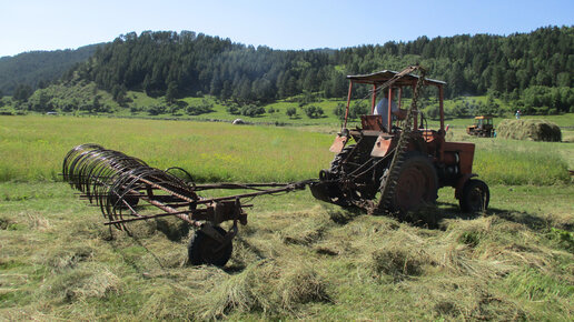 Сено гребём, валы собираем. Вилы возьмём, зарод заметаем!
