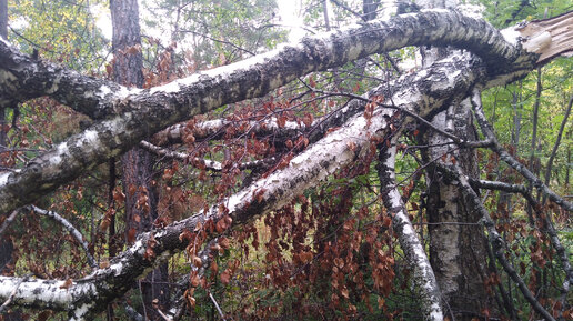 Речь о корявой березке. Сломавшись, пустила же слёзки...