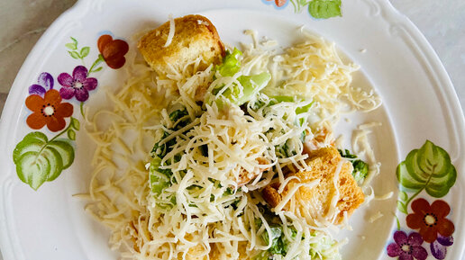 Салат цезарь с креветкой. Отличный вариант быстрого обеда или ужина