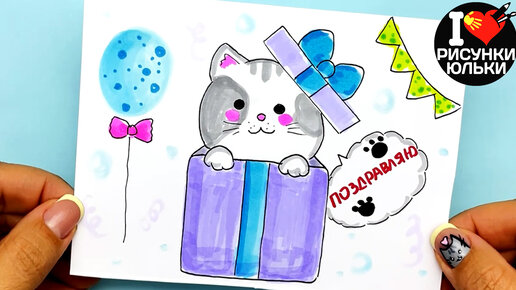 DIY Простая открытка на День Рождения своими руками. Рисунки Юльки для срисовки