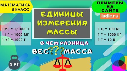 Единицы измерения массы. Как грамм перевести в килограмм. Масса, вес, их разница. Математика 5 класс