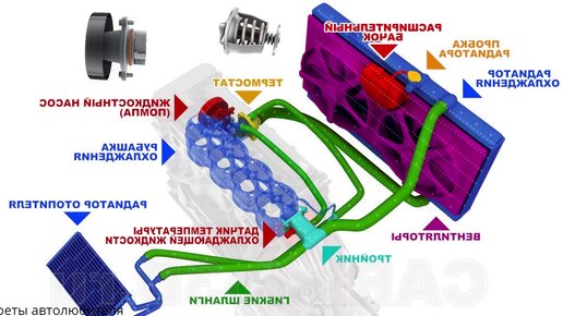 Система охлаждения двигателя автомобиля.