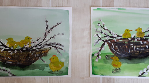 Рисуем с ребенком. Цыплята в корзине. Детские рисунки