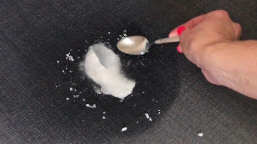 Покажу, как удалить масляное пятно с дивана при помощи воды, соли и соды