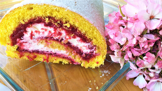 БИСКВИТНЫЙ РУЛЕТ С ВИШНЕЙ