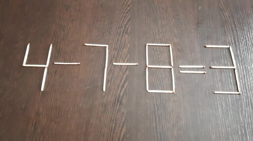 2 решения для неверного равенства: 4-7-8=3 (переложить 2 спички)