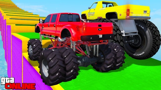 КАК ДАЛЕКО СМОГУТ ЧИТ МОНСТР ТРАКИ ЗАБРАТЬСЯ ПО СТУПЕНЬКАМ ЛЕСТНИЦЫ? ЭКСПЕРИМЕНТЫ ГТА 5!