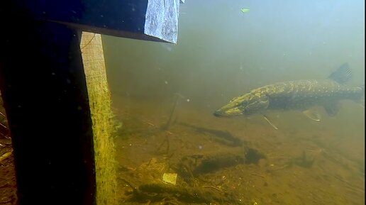 Наглая щука не боится камеру и атакует садок с мелочью!