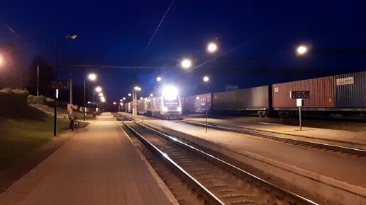 Контейнерный поезд в ночи