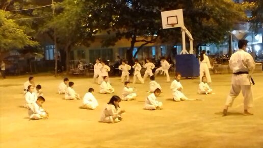 Юные каратисты во Вьетнаме занимаются прямо на улице