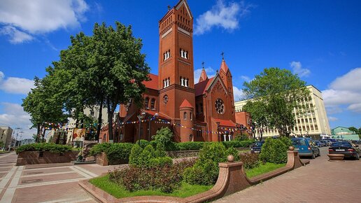 Прогулка по Площади Независимости в Минске. Костёл святого Симеона и святой Елены