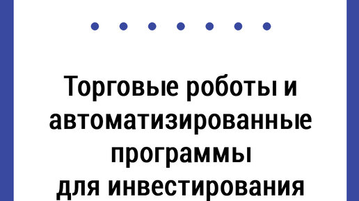 Торговые роботы и автоматизированные программы для инвестирования