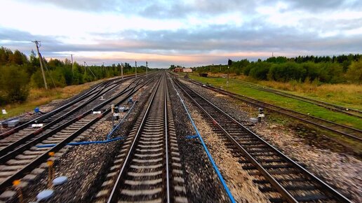 Как ночью поезд проезжает станцию | Вид из кабины машиниста
