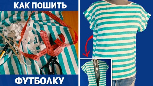 КАК ПОШИТЬ ЖЕНСКУЮ ФУТБОЛКУ ЗА ЧАС. Летняя трикотажная футболка с открытой спинкой.