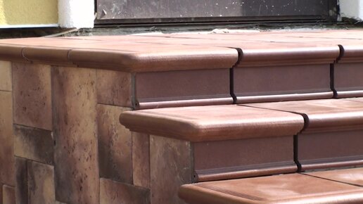 Ступени и площадка лестницы из клинкерной плитки, приклейка плитки на клей Ceresit CM16