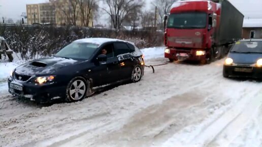 Буксировка фуры в горку при помощи Subaru Impreza WRX