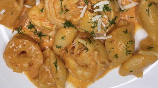 Очень вкусная паста с королевскими креветками 🍤🍤🍤 в томатно - сливочном соусе 😋)