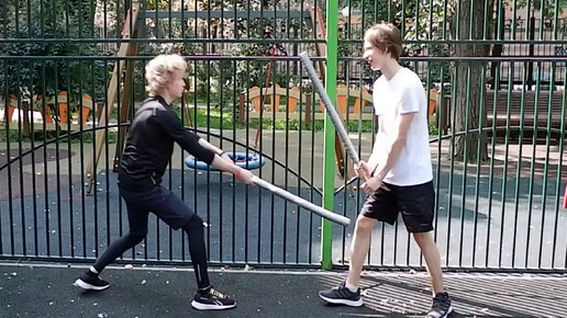 Далее: Урок фехтования катаной. Кендзюцу. Спарринг на длинных мечах летом на спортплощадке