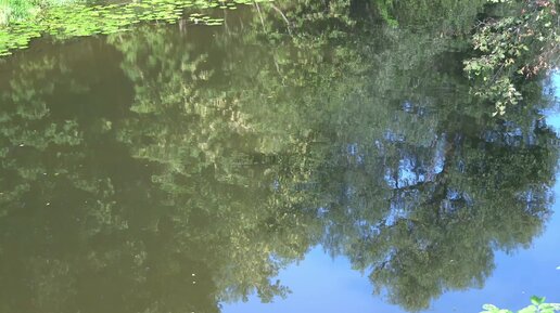 Река Десна в усадьбе Дубровицы, отражение зелени в водной глади, часть первая