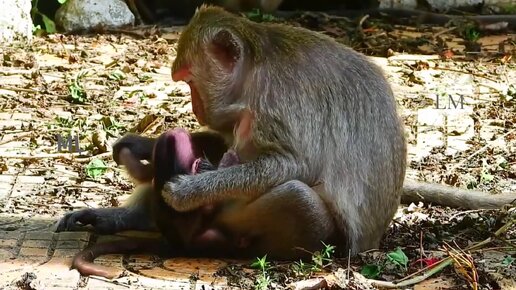 Маленькая обезьянка- грудничок хочет кушать она и так и сяк,но мама...