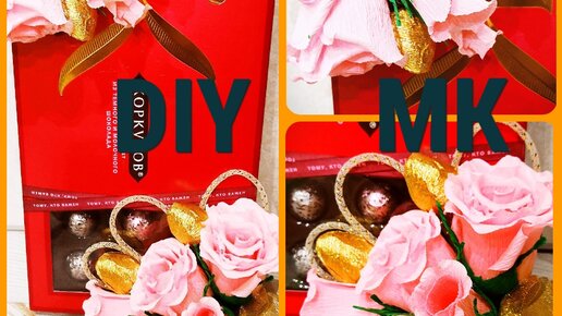 DIY. УКРАШЕННАЯ КОРОБКА С КОНФЕТАМИ. СВОИМИ РУКАМИ. DECORATED BOX WITH SWEETS