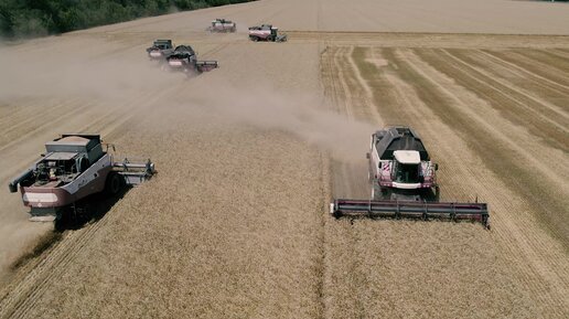🎥 Комбайны на полях. Уборка пшеницы. Видеофутаж.