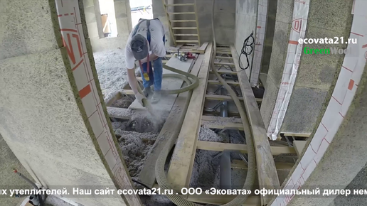 Нанесение эковаты на горизонтальные перекрытия каркасного дома